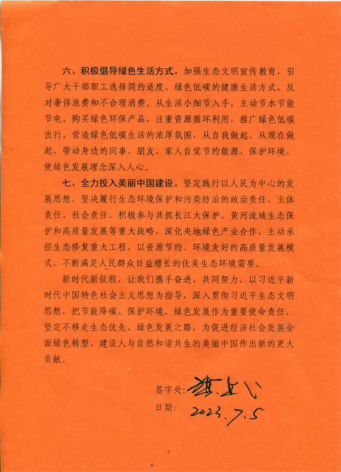 公司积极响应总局“节约优先向绿而行携手奋进建设美丽中国新征程”主题倡议